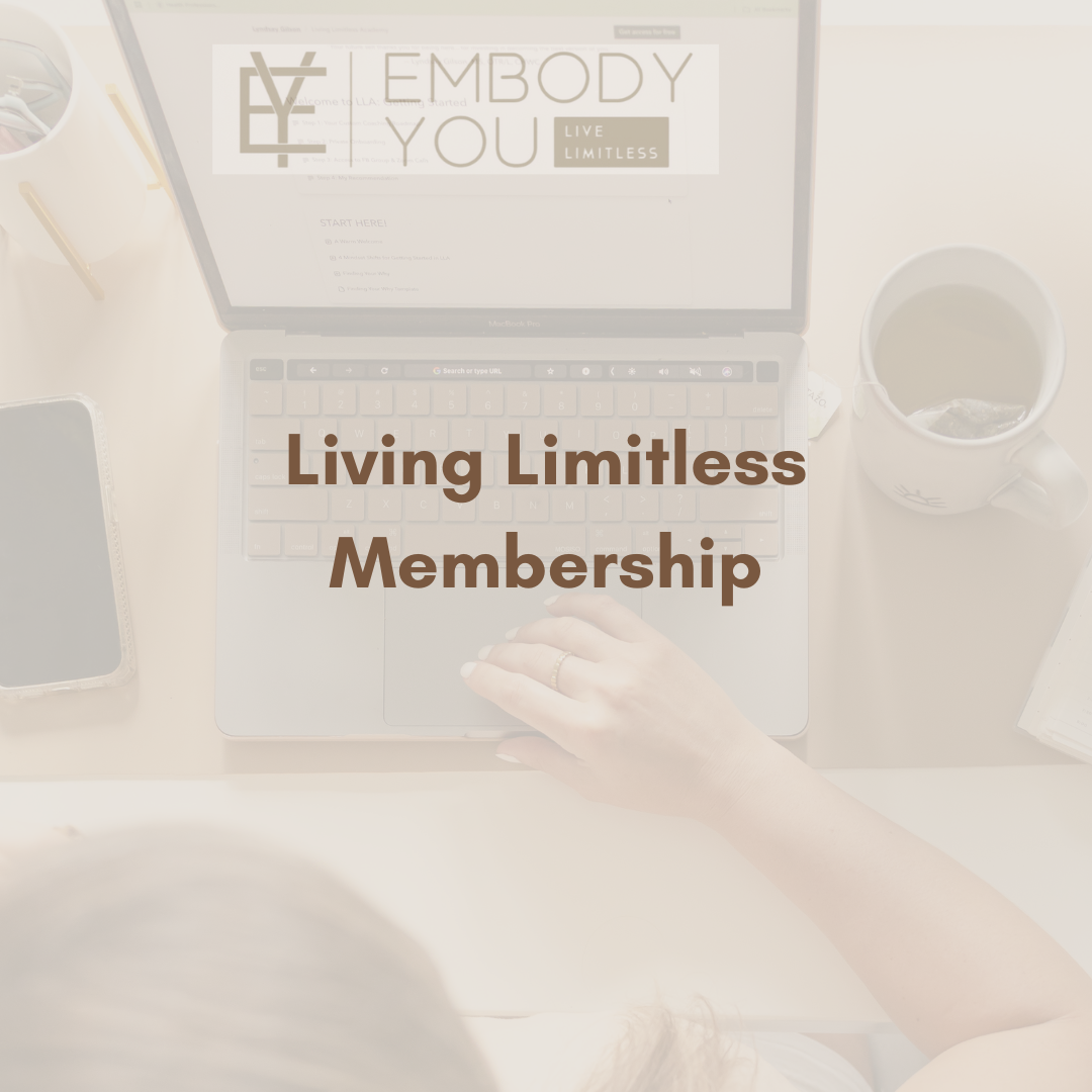 You gain access to her signature Living Limitless Membership resource library to use on your own to stay grounded, accountable, intentional, and supported in every season of life (personally and professionally).